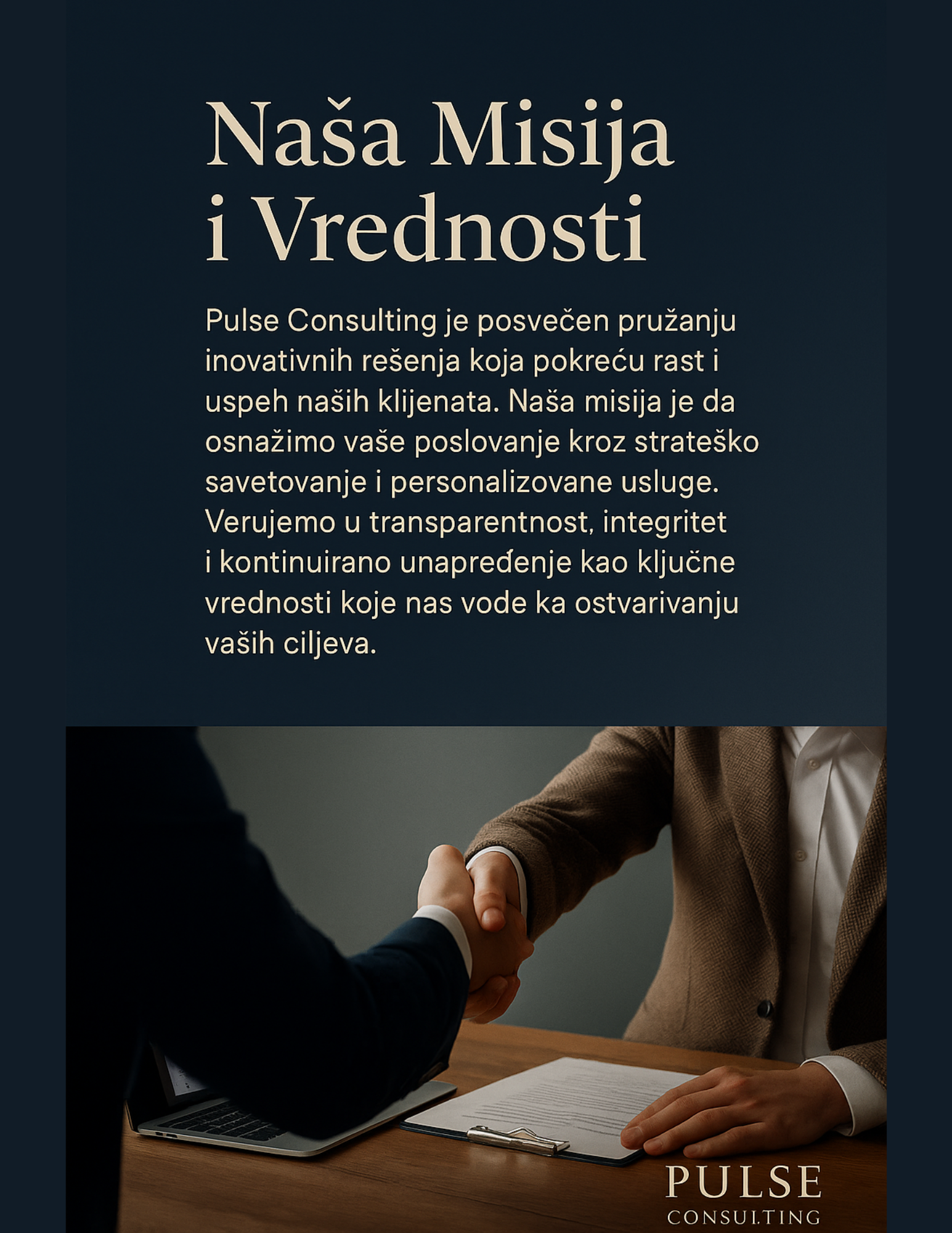 Puls eConsulting je posvećen pružanju sveobuhvatnih rešenja koja pomažu preduzećima da rastu i napreduju. Naša stručnost pokriva širok spektar usluga, uključujući finansijski konsalting, računovodstvene usluge, marketing i komunikacije, kao i biznis strategiju i razvoj. Verujemo u prilagođena rešenja koja odgovaraju jedinstvenim potrebama svakog klijenta.